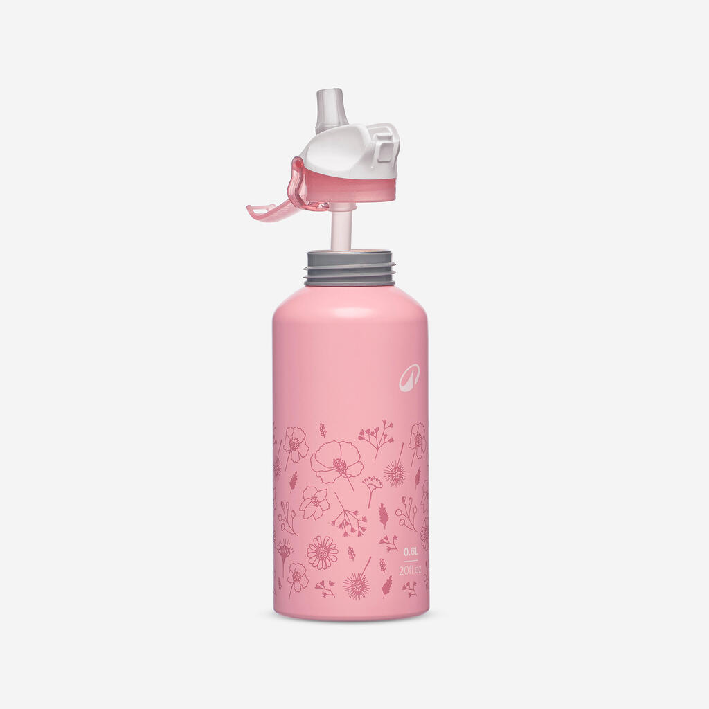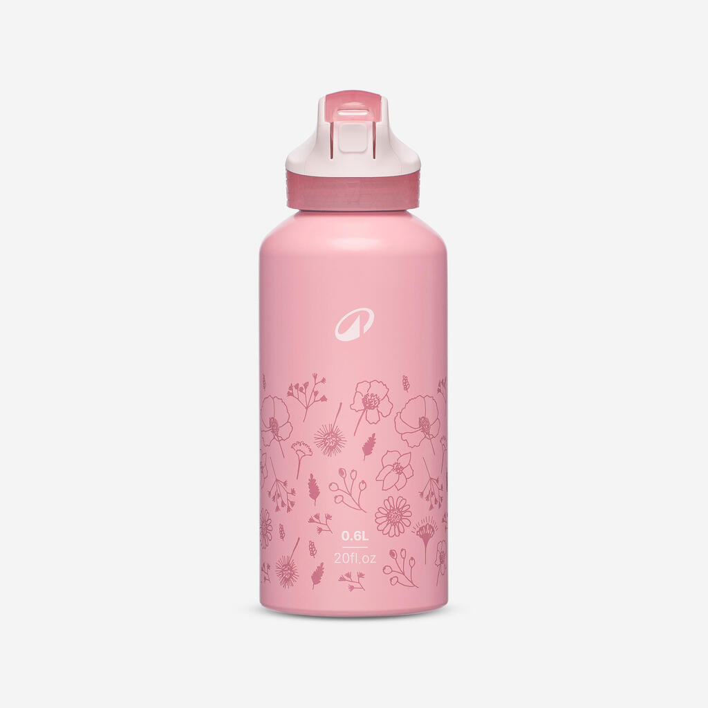 Kids’ 0.6L alu. water flask 500 with instant cap, pipette and straw, for hiking