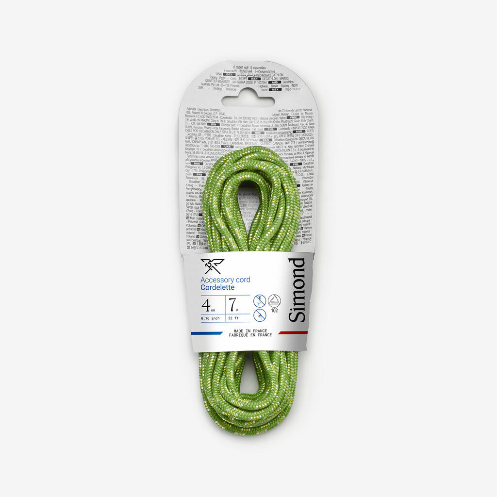 4 mm diameter semi-static cordelette for multiple backup uses in climbing, mountaineering, caving or working at height.