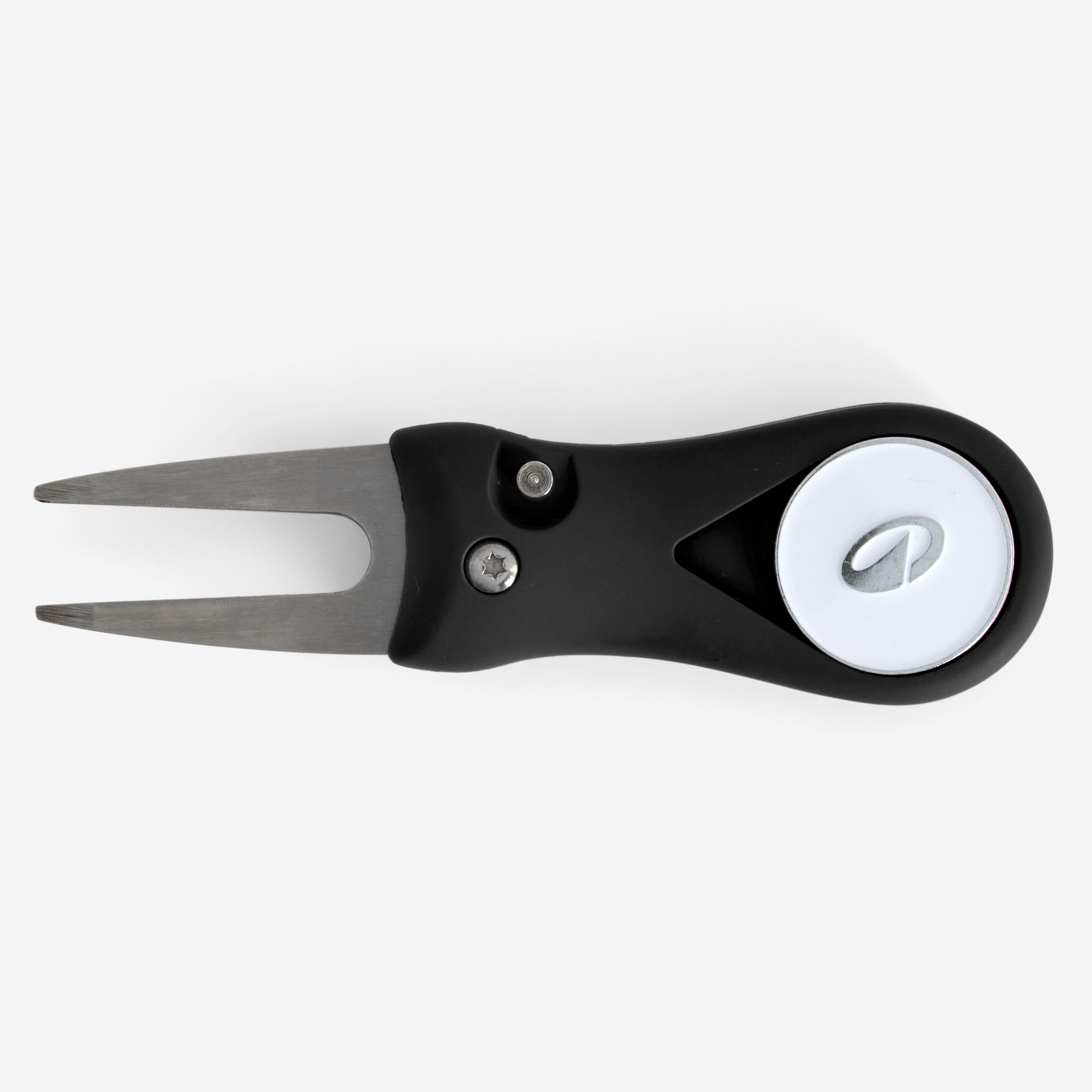 For minimum bulk, this divot repair tool deploys automatically and folds away to be stored in a pocket. It has an integrated magnetic ball marker