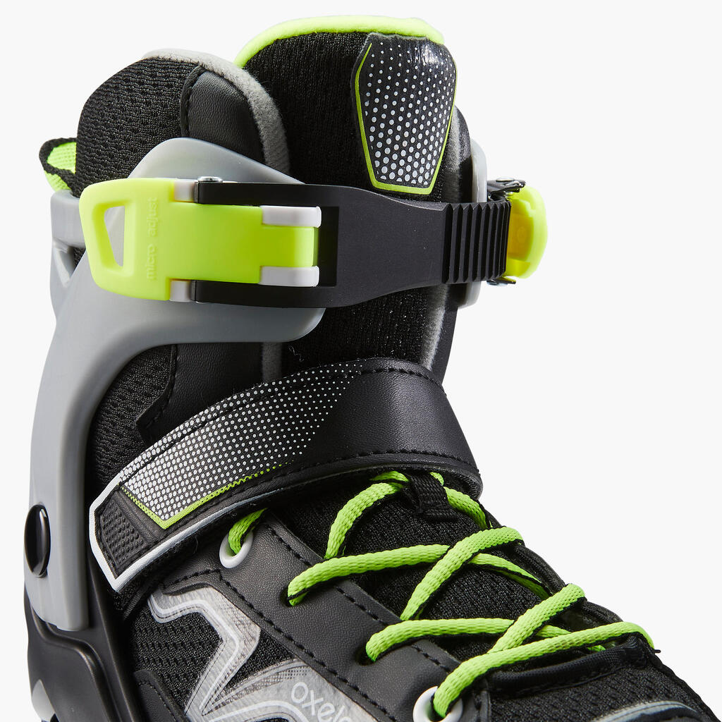 These inline skates are very easy to put on thanks to their simple, effective fastenings: a micrometric buckle on the top of the boot for more precision + a rip-tab strap on the instep to ensure the heel fits tightly into the shoe.