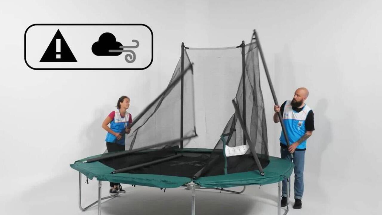 Protect your trampoline by lowering the posts and net at the first sign of strong wind or bad weather.