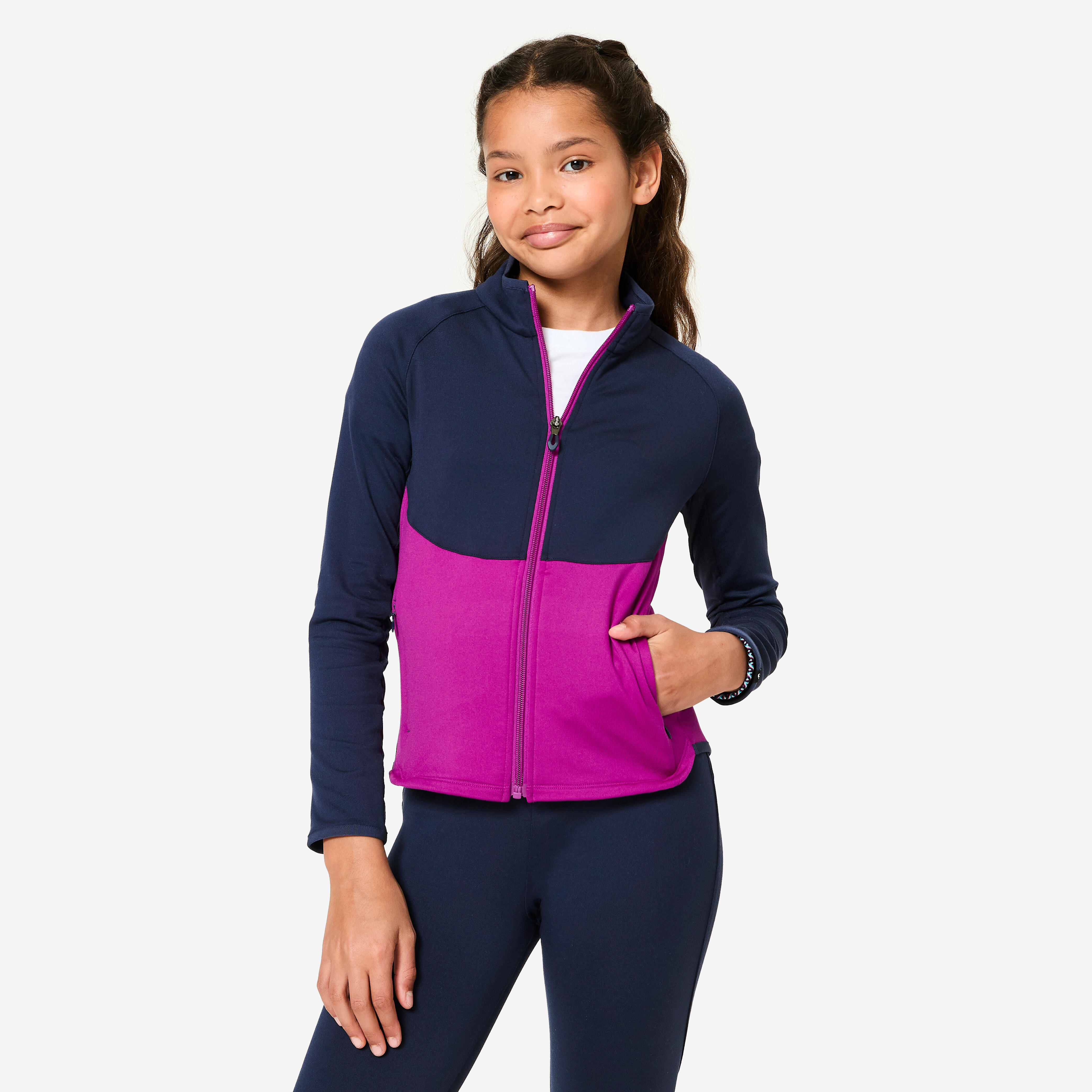 A warm, breathable, stretchy fabric, zipped pockets on the jacket and elasticated waistband: this 2-piece ensemble is an essential for an athlete's wardrobe!