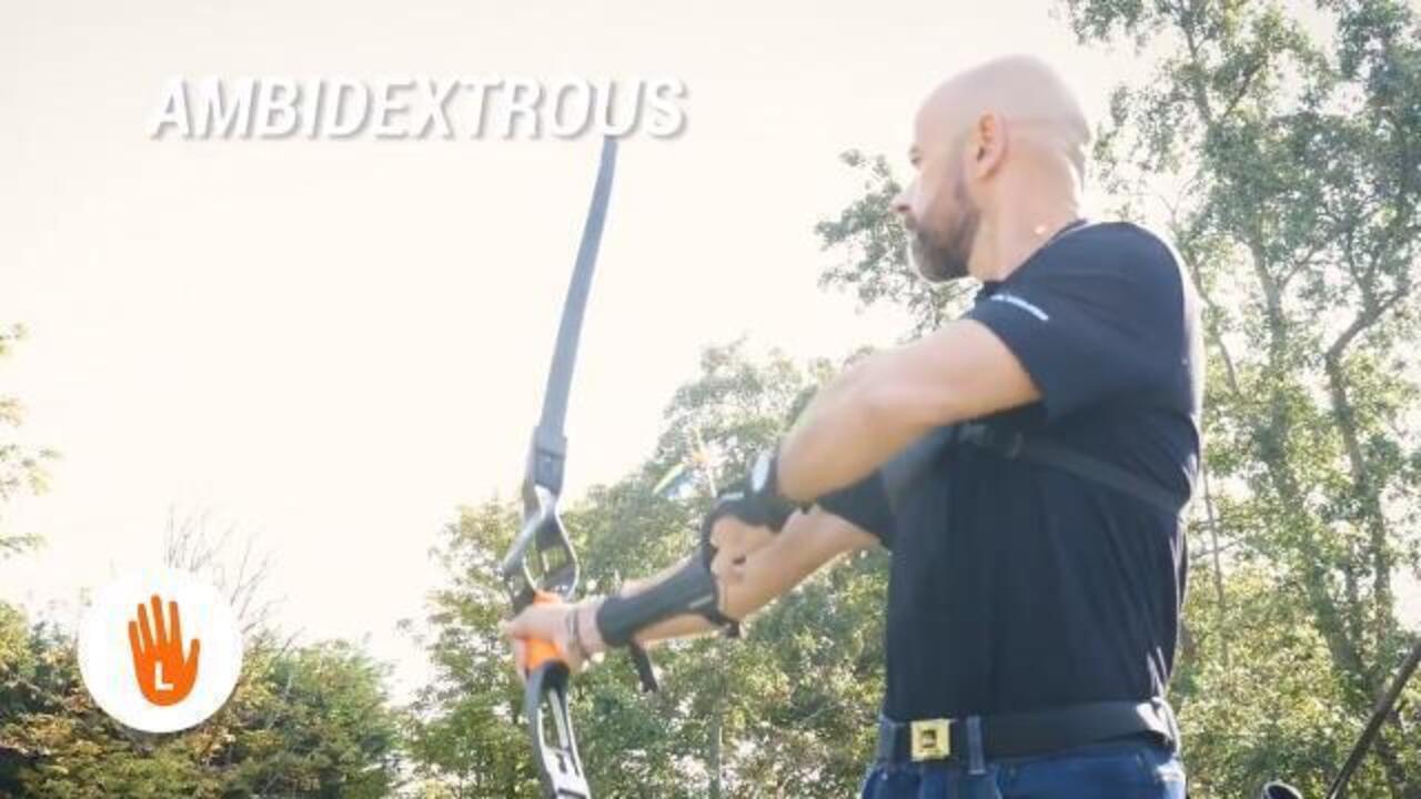 This ambidextrous bow has no sights, so you simply aim it intuitively.