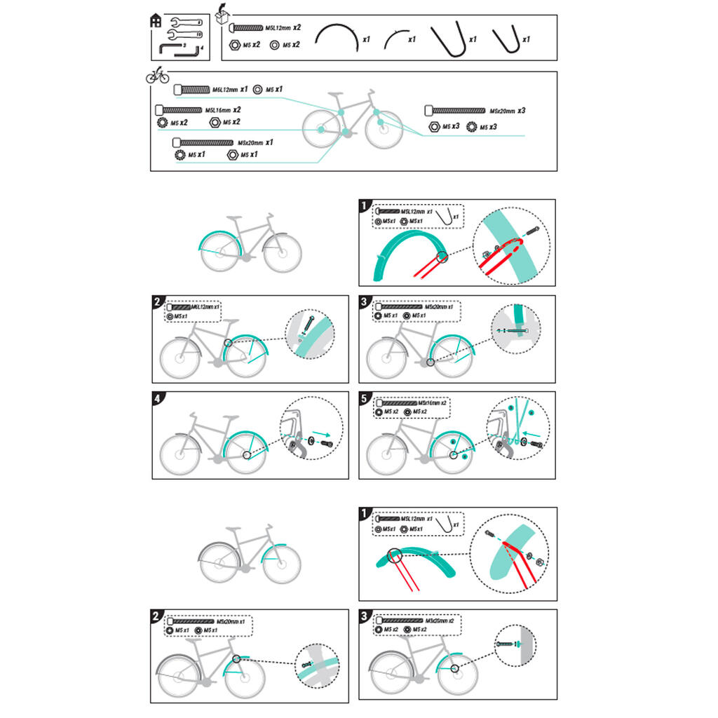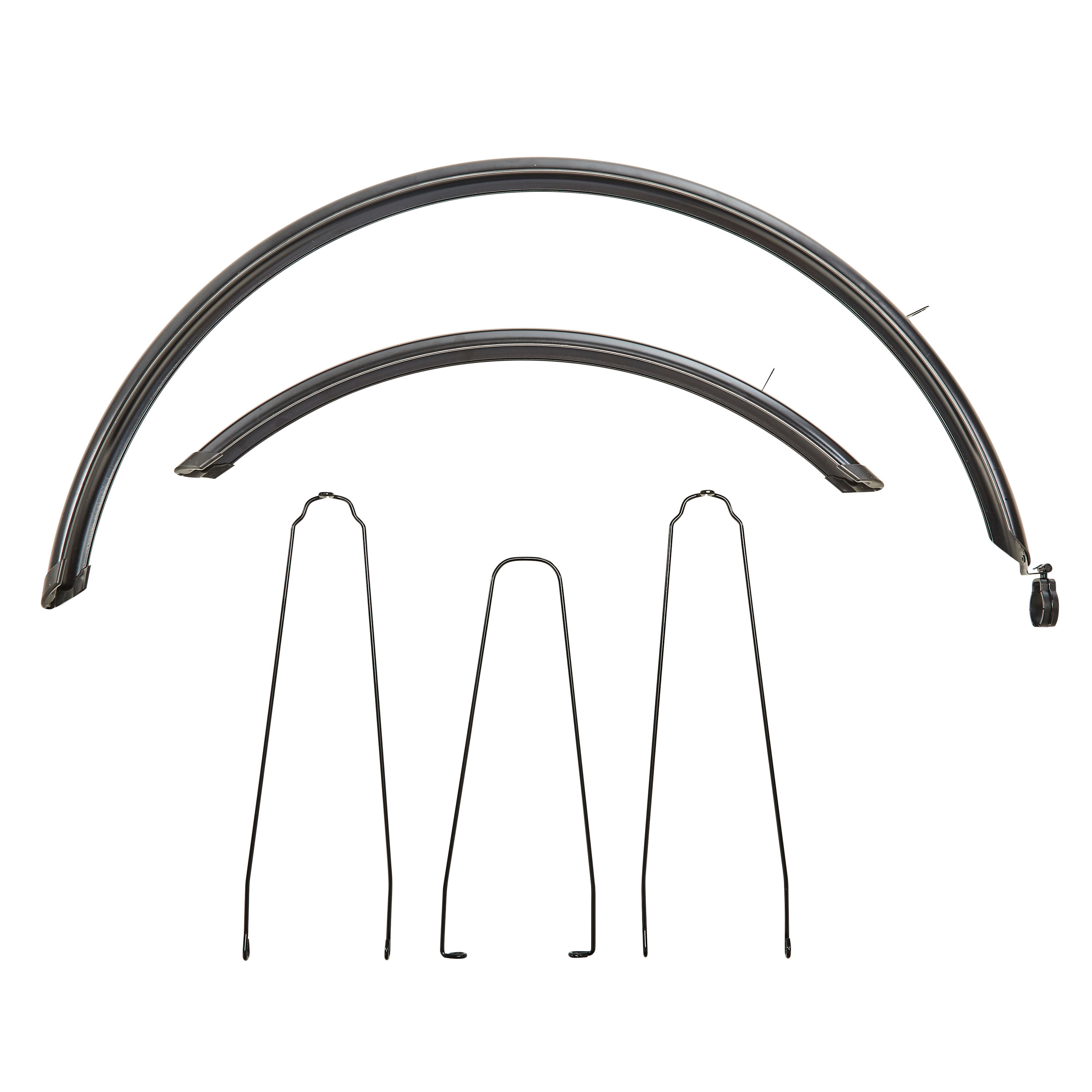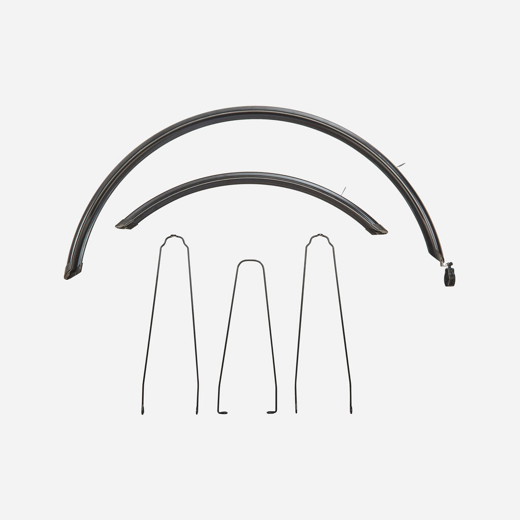 In wet conditions, mudguards can help keep you clean and dry. This mudguard kit offers wide coverage to protect your back and feet.