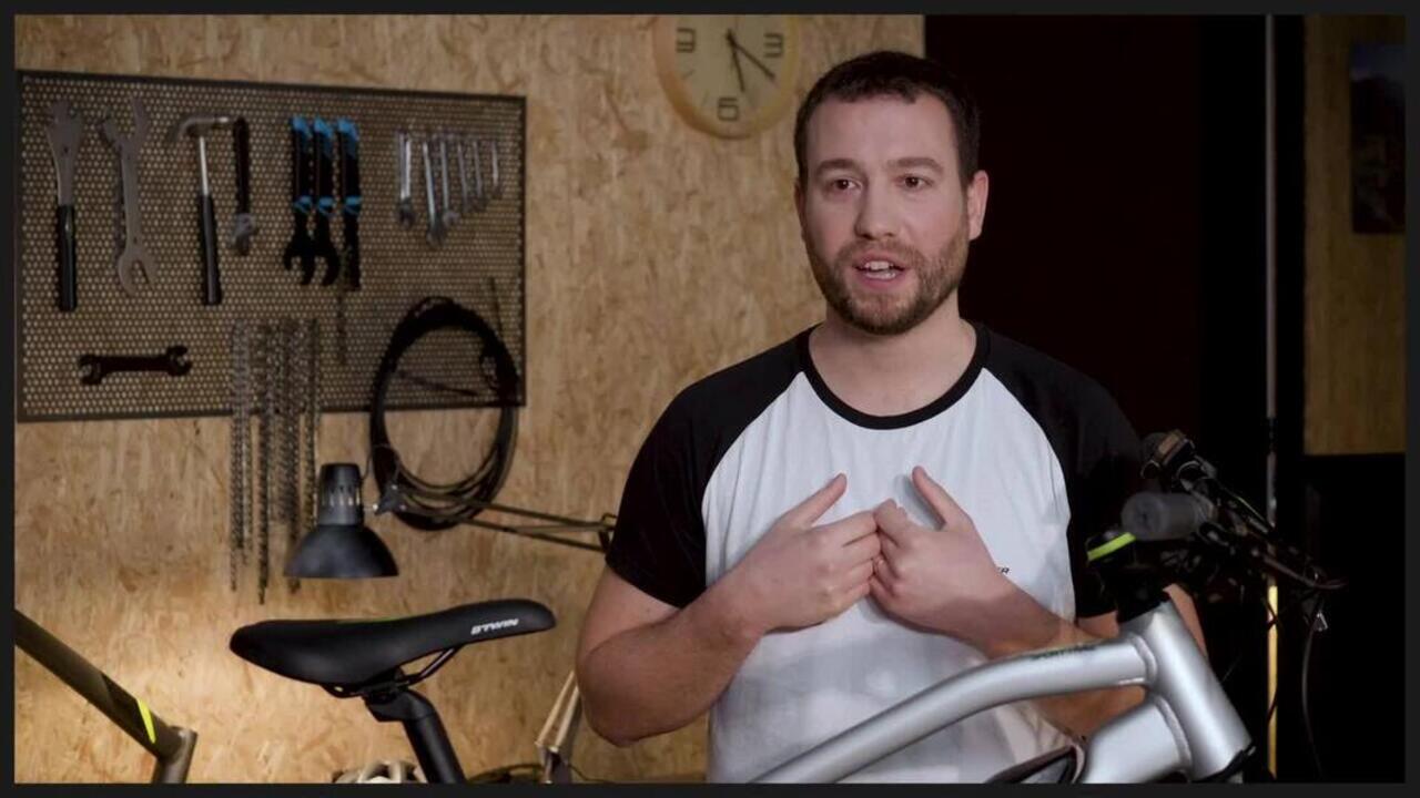 The frame of the Rockrider E-ST 520 electric MTB is made of 6061 aluminium with hydroformed tubes. Why? The battery sits snugly on the frame to improve the robustness of this electric mountain bike.