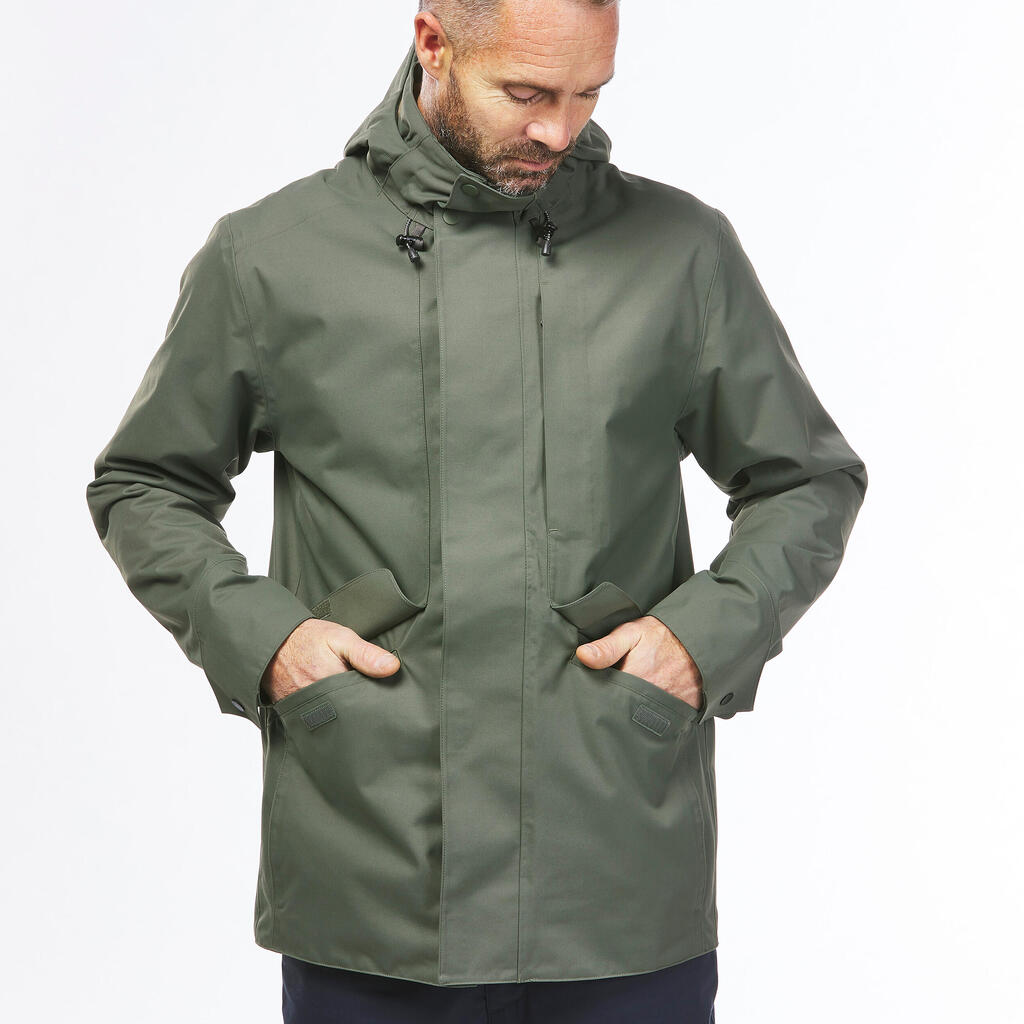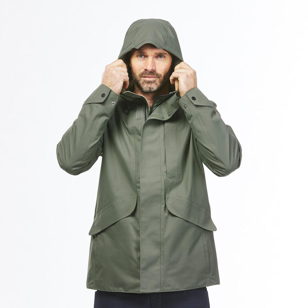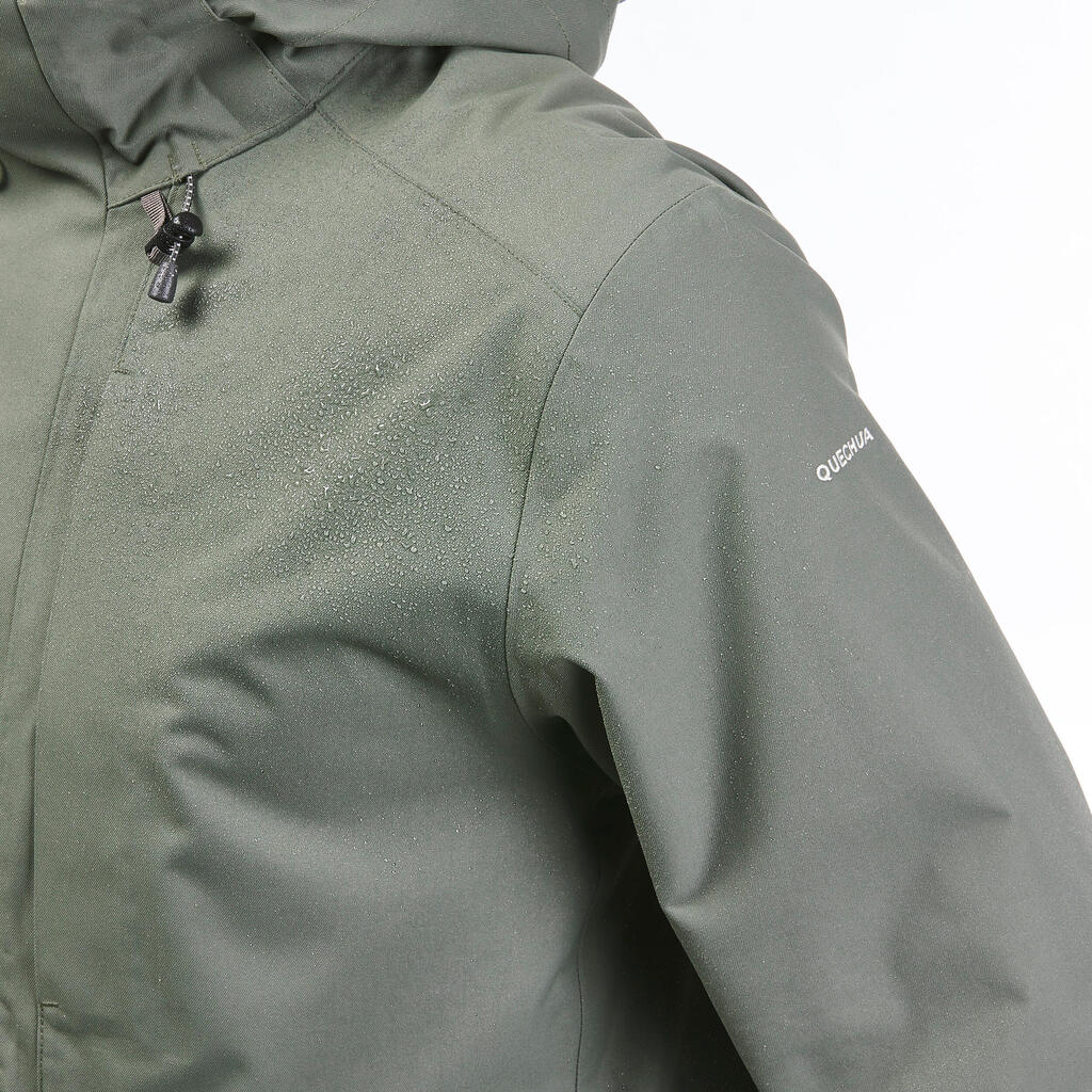During sports activity, the extent to which we perspire depends on the intensity/duration of the physical effort.If the breathability of the fabric is not adapted to your type of physical activity, the perspiration vapour condenses inside the jacket. You feel damp inside:It is not rain coming through but perspiration vapour condensing. You need to choose your jacket according to the type of physical activity. This parka has been designed for regular day hiking at a maximum speed of 5 km/hr.