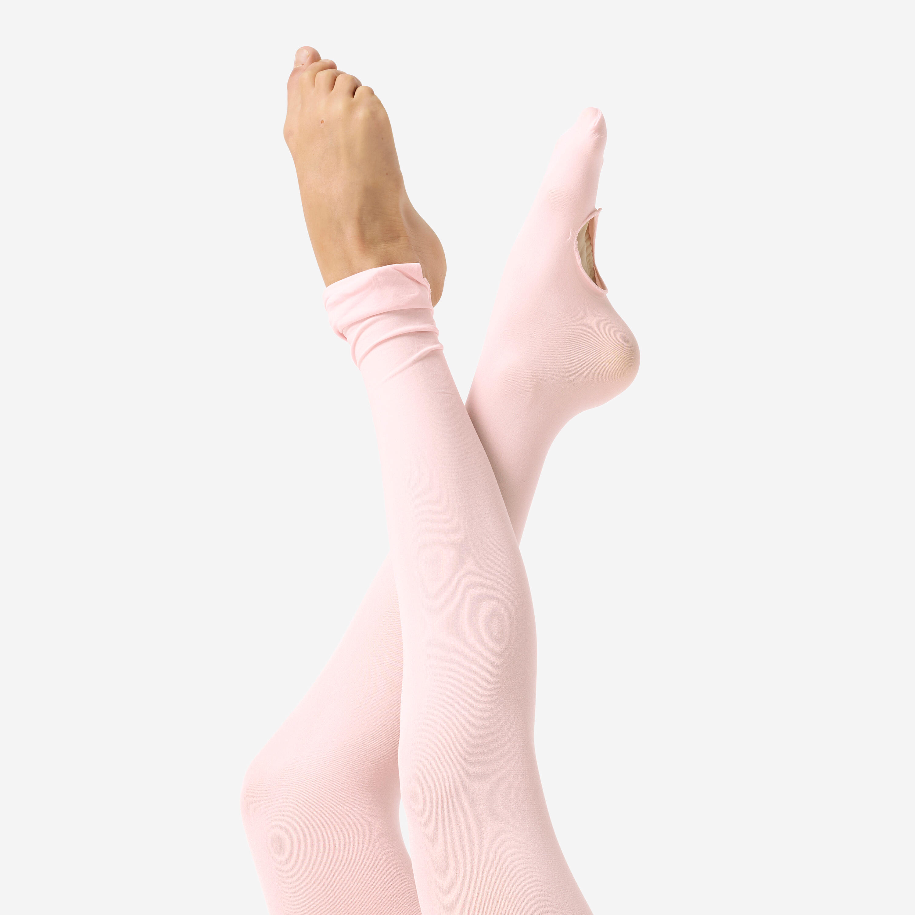 Looking for convertible pink tights? These tights have an opening under the arch so you can adjust them to your needs and easily insert your pads when dancing on pointe.