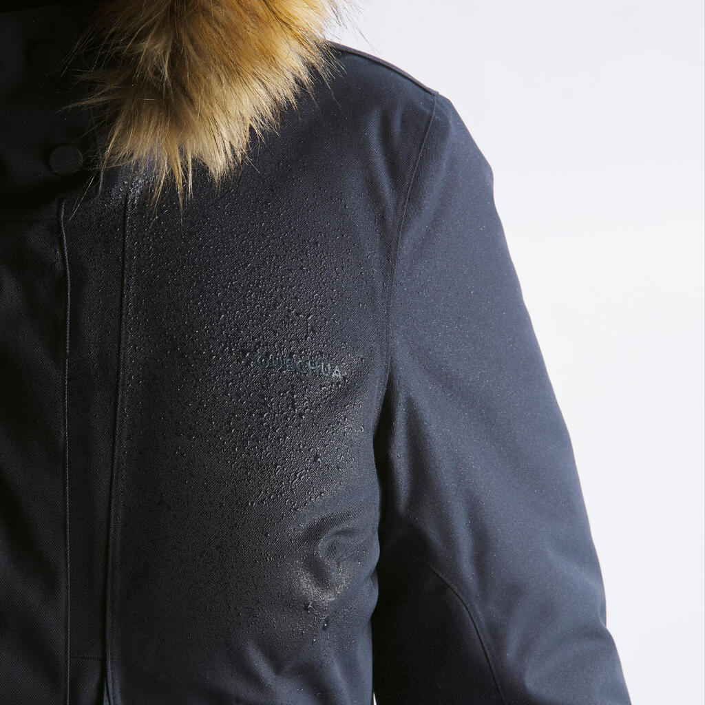 A fabric's water repellent property is its capacity to make water run off its surface without seeping in. This prevents the fabric from soaking up water and keeps it lightweight, warm and breathable. The water repellent property is achieved by treating the fabric's exterior. This treatment must be renewed throughout the garment's lifespan (recommended after each wash). Products (spray or liquid) for this purpose are available in our stores.