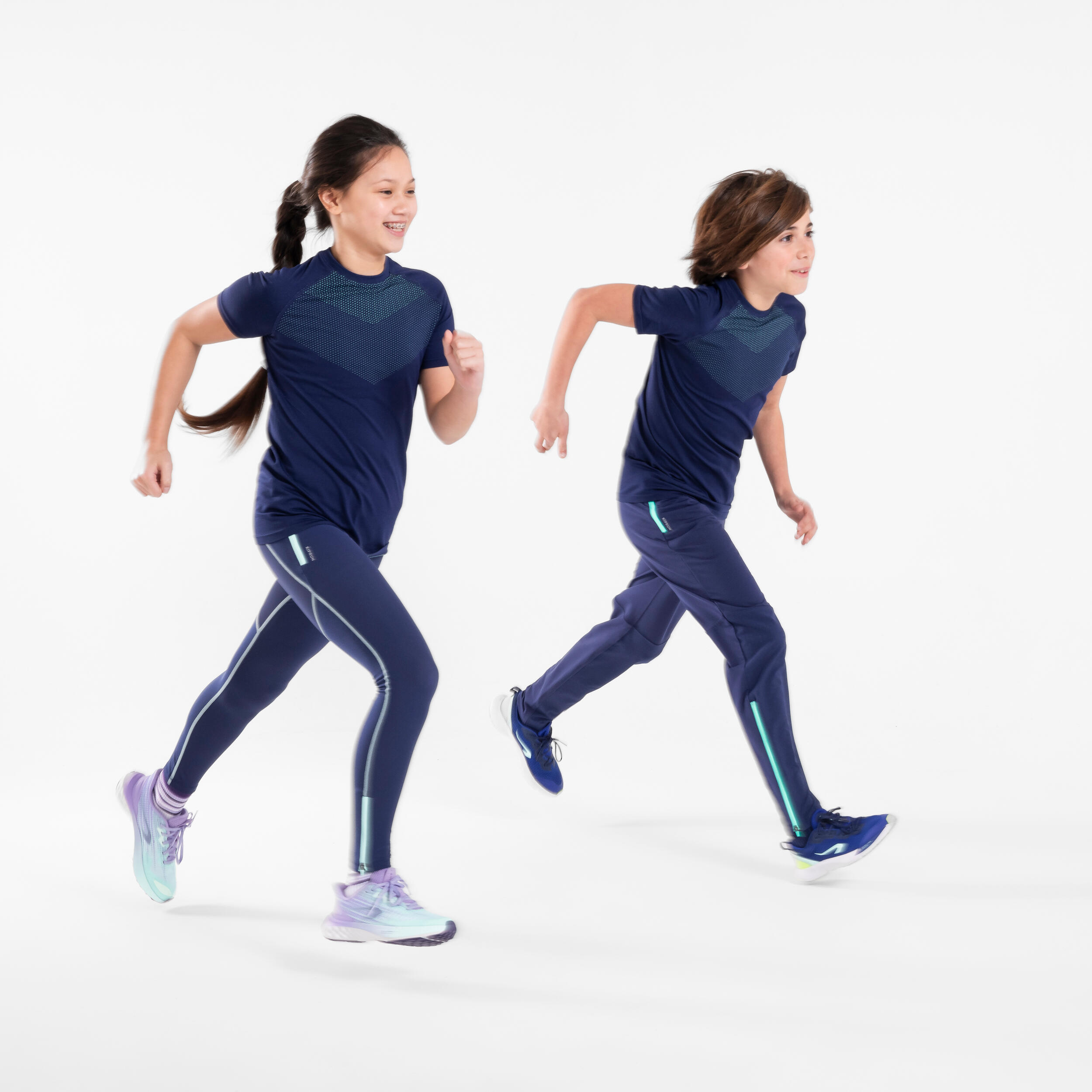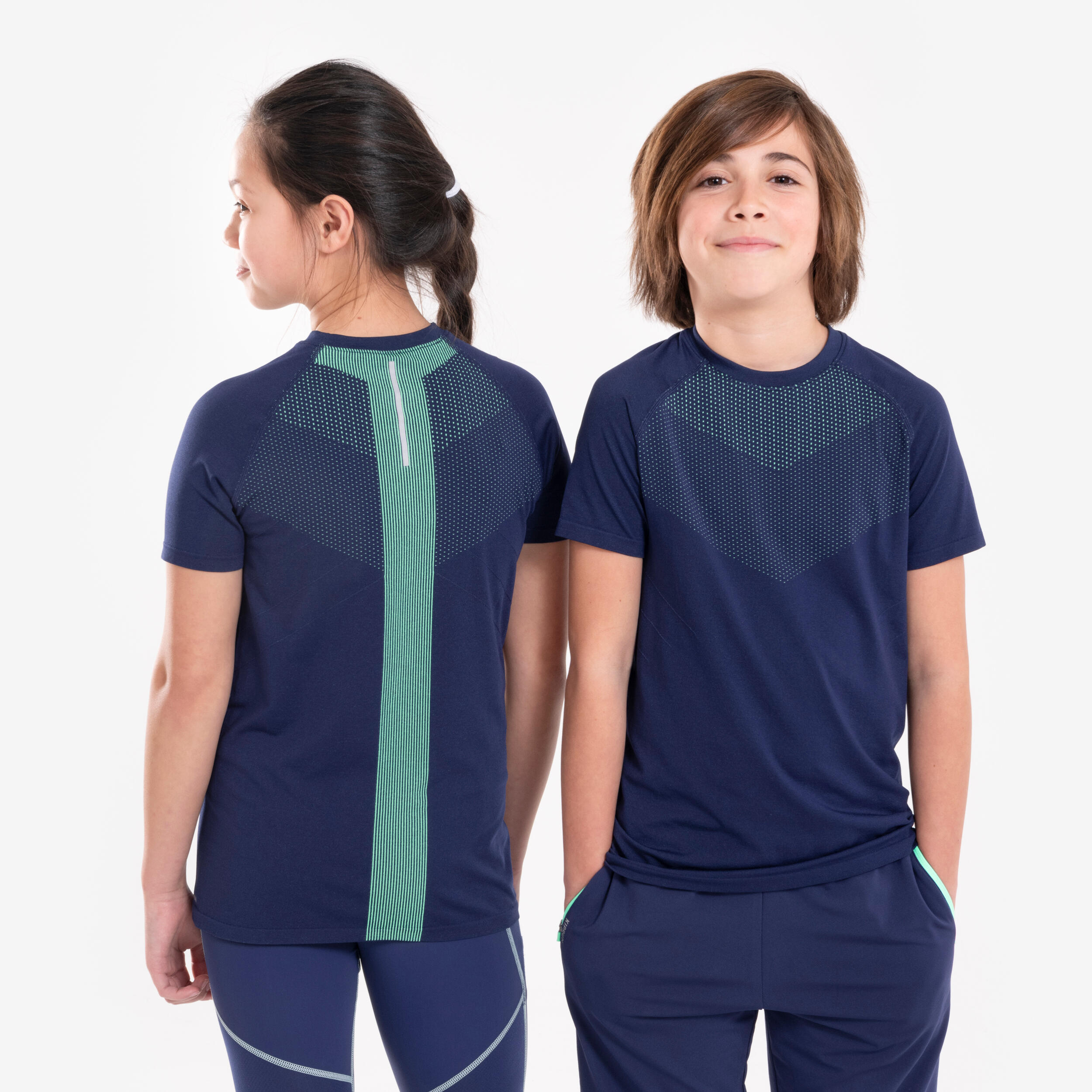 Kids' SKINCARE 500 breathable short-sleeved running T-shirt - navy green