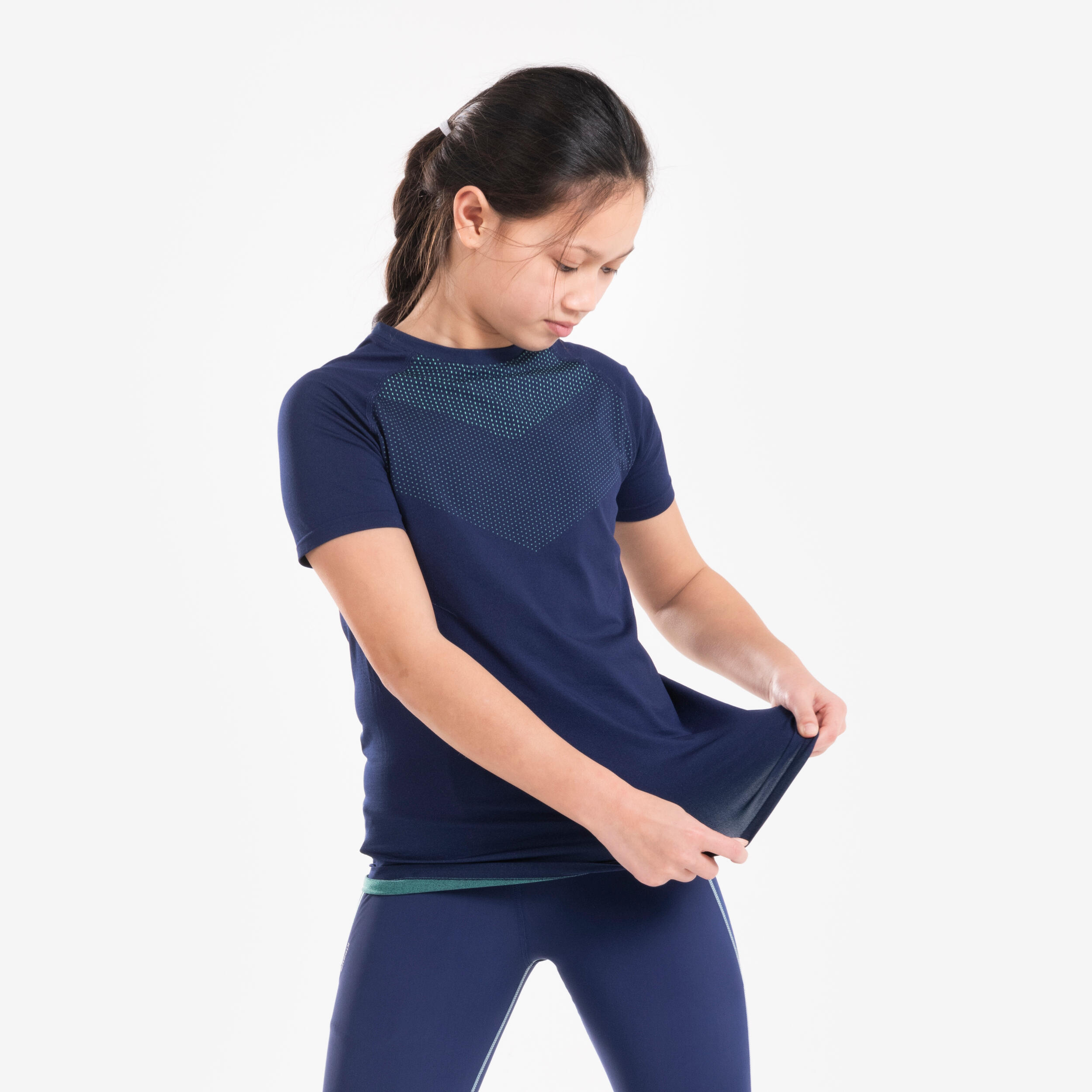 Our team of running enthusiasts designed this T-shirt as a breathable, seamless undergarment for children doing athletics in wintertime.