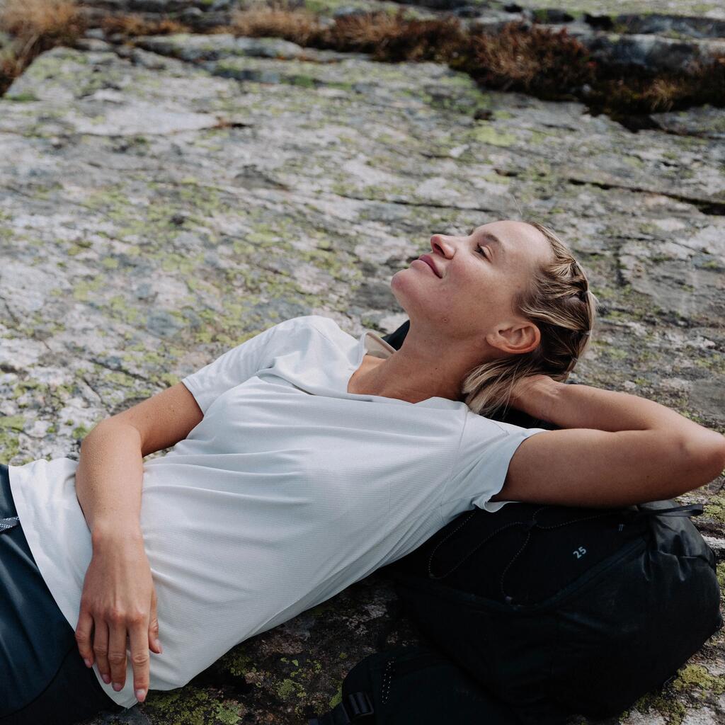 This short-sleeved hiking T-shirt is ideal for regular hiking. The breathable fabric wicks away perspiration.
