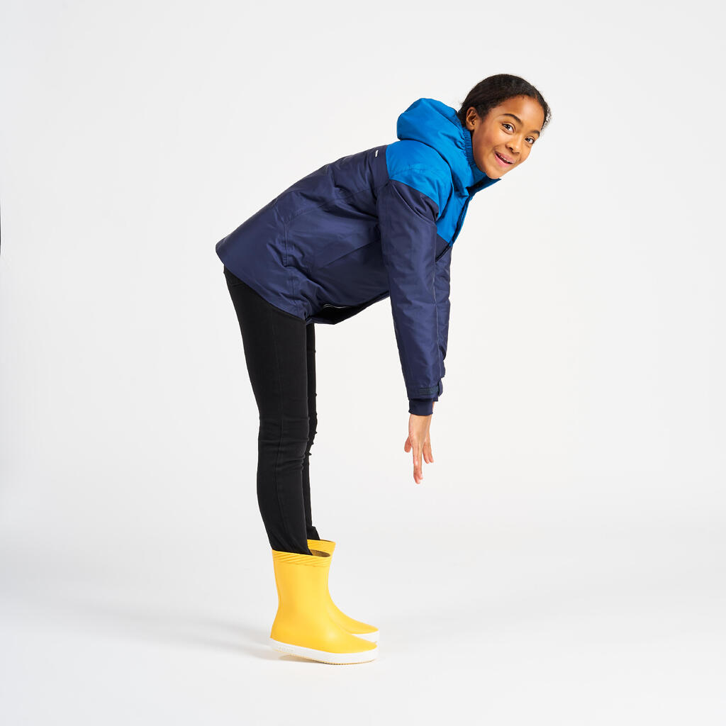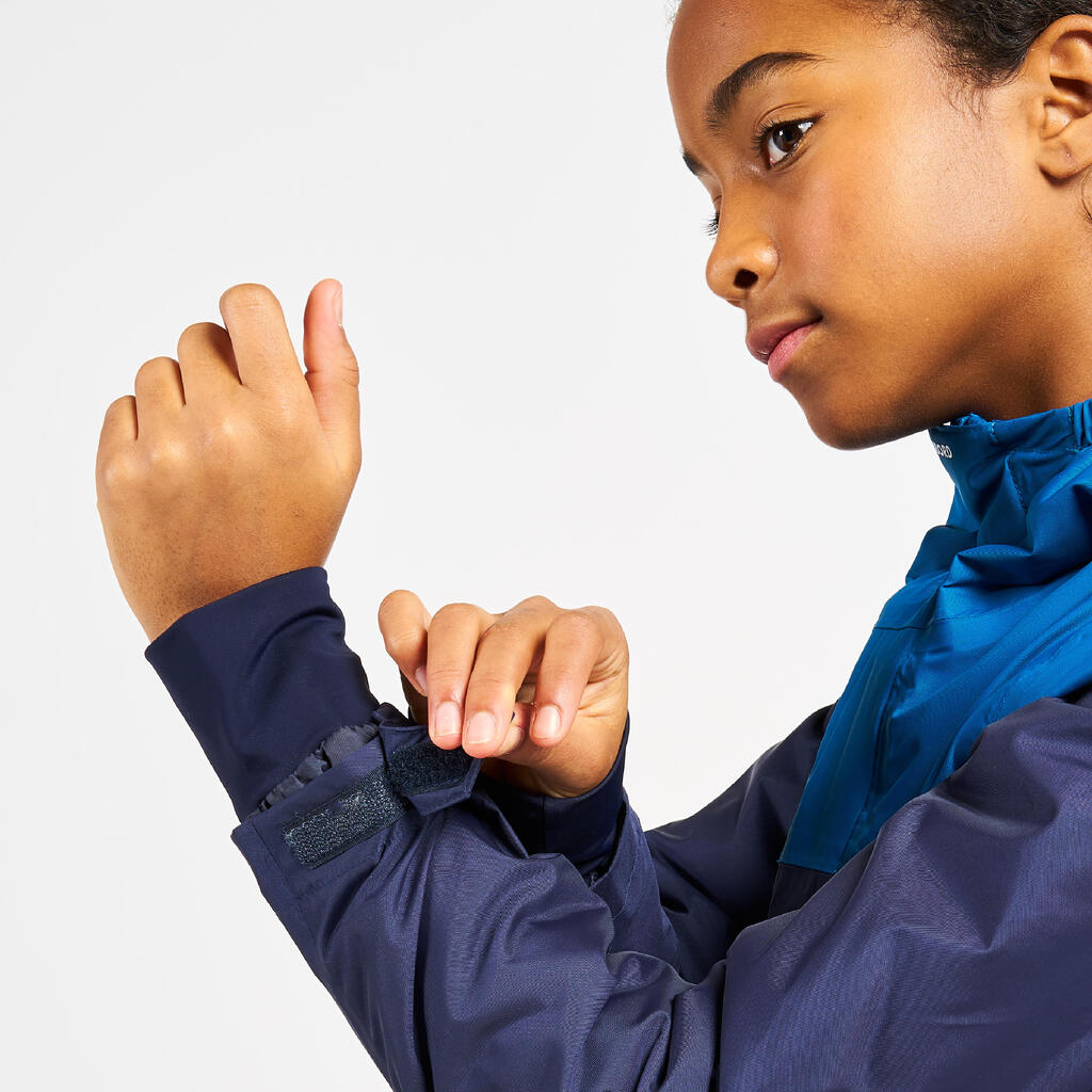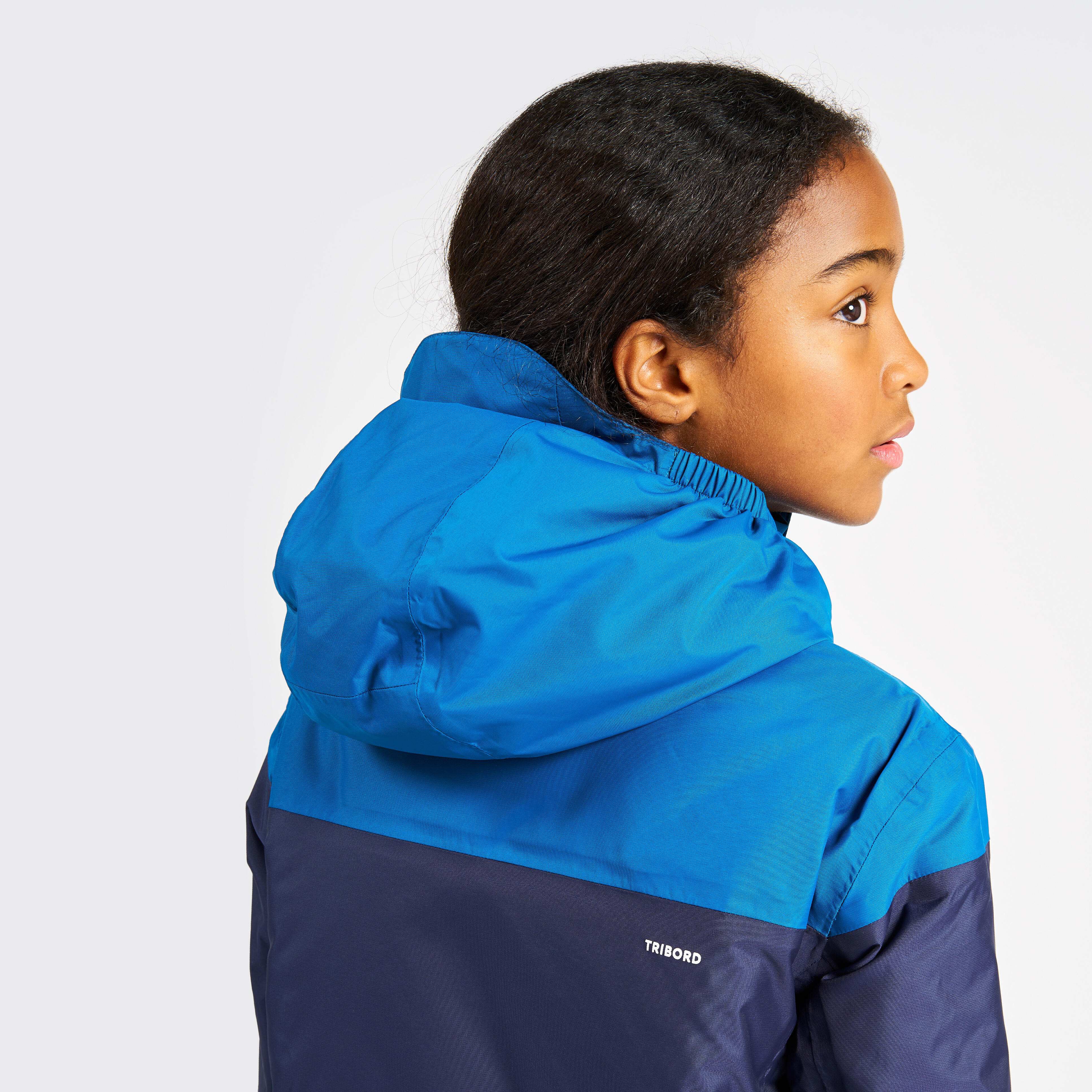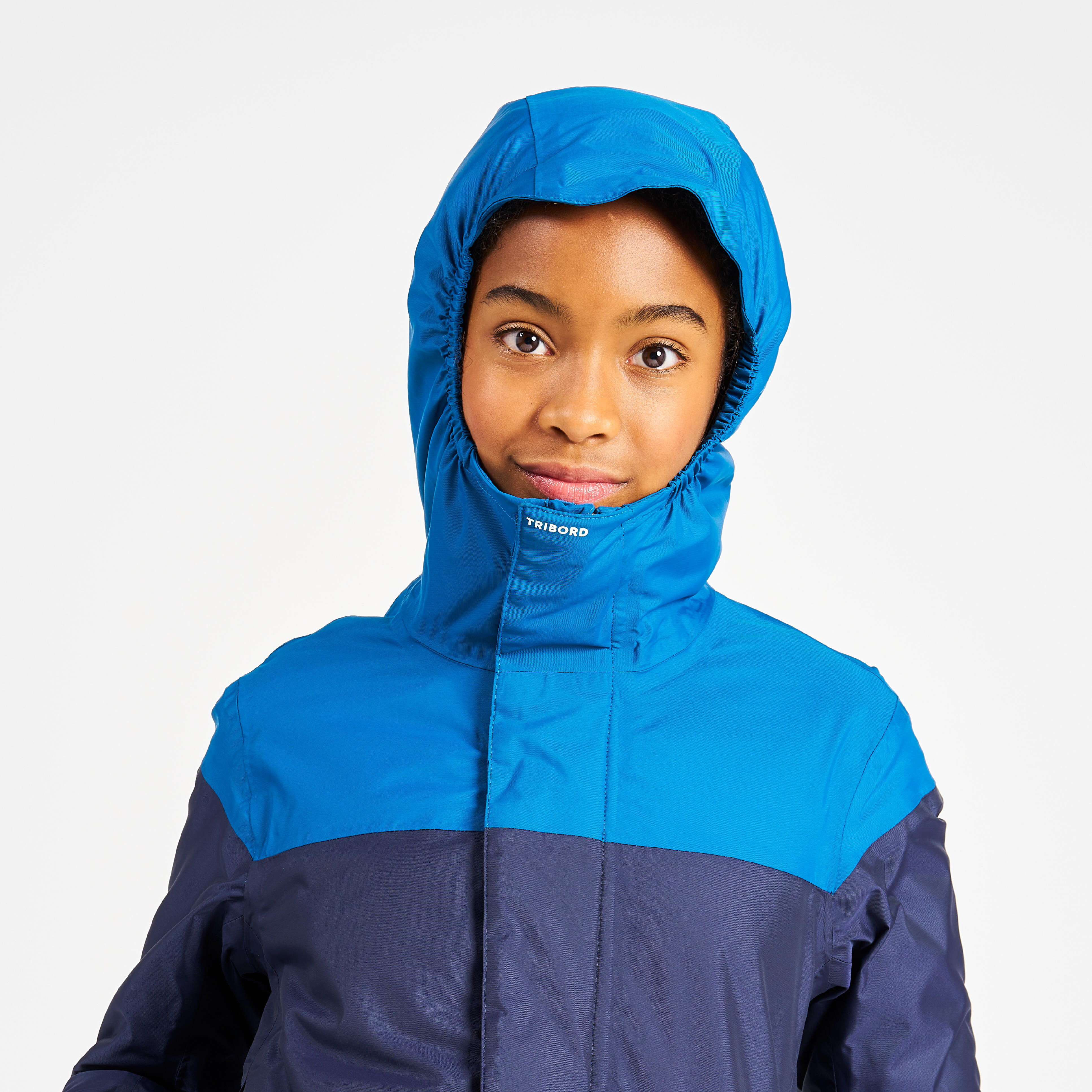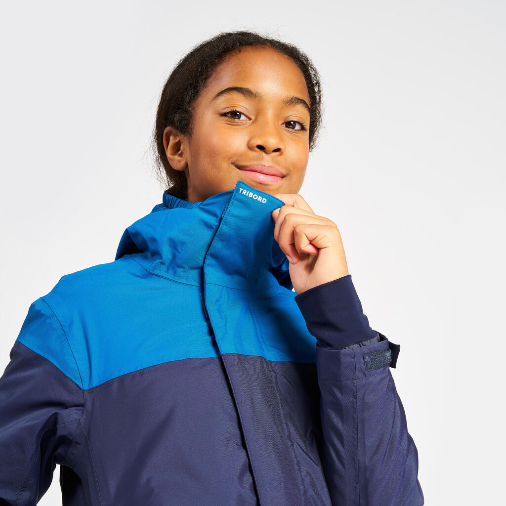 This warm and breathable kids’ sailing jacket has a high collar, coated fabric and sleeves that block windchill. Withstands moderate rain for 2 hours.