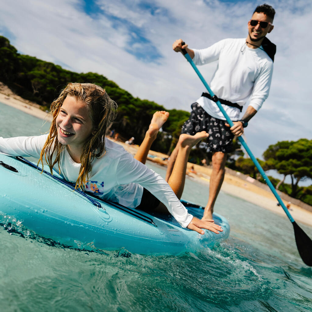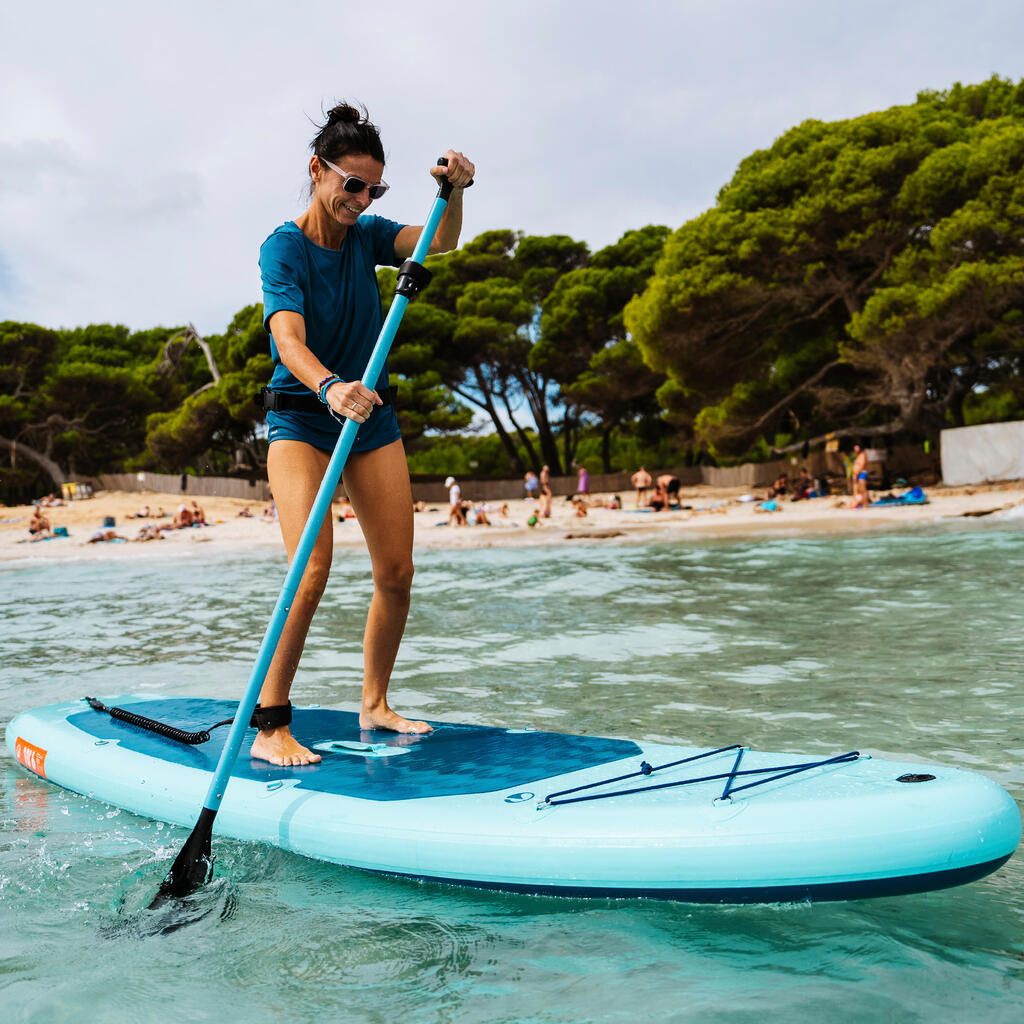 The paddle can be adjusted to about 10-15 cm above your waist: remember feeling comfortable is the priority