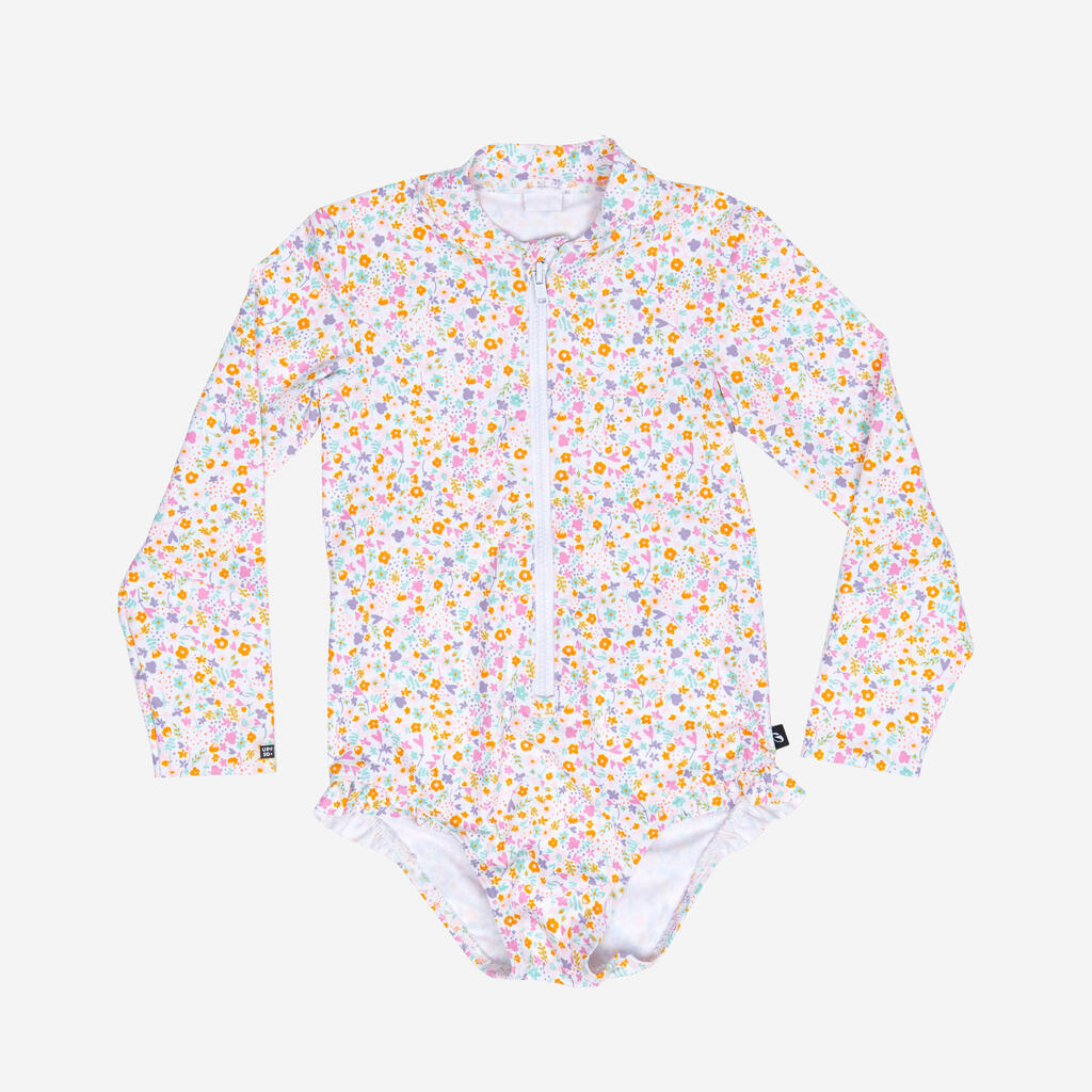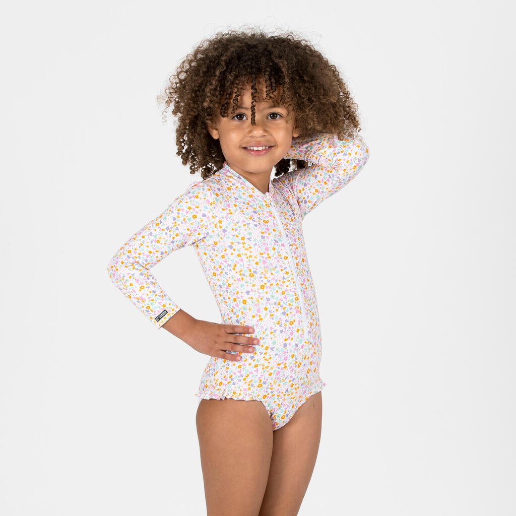 Easy to put on and take off thanks to the long front zip. This unique long-sleeved swimsuit will make little girls eager to jump in the water!