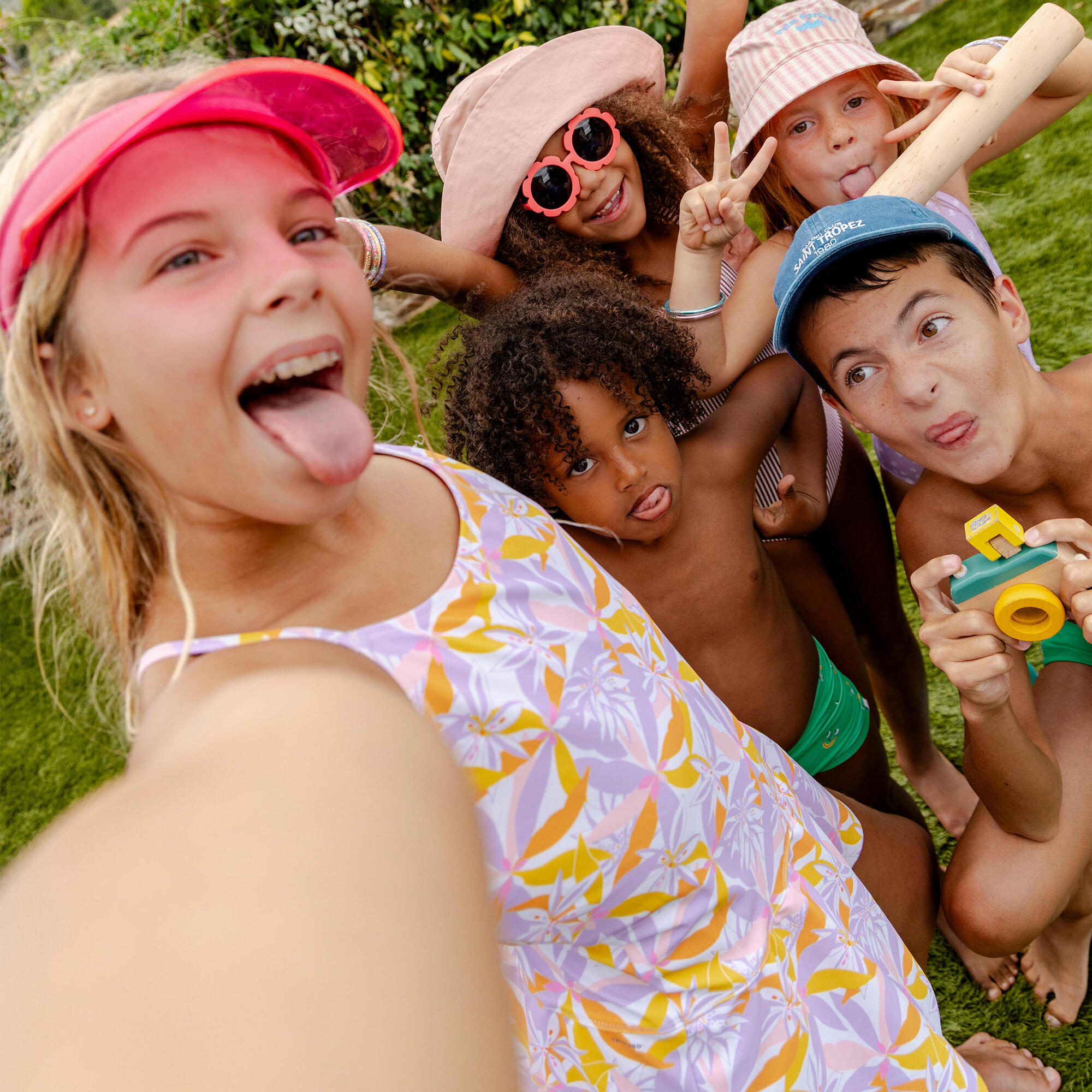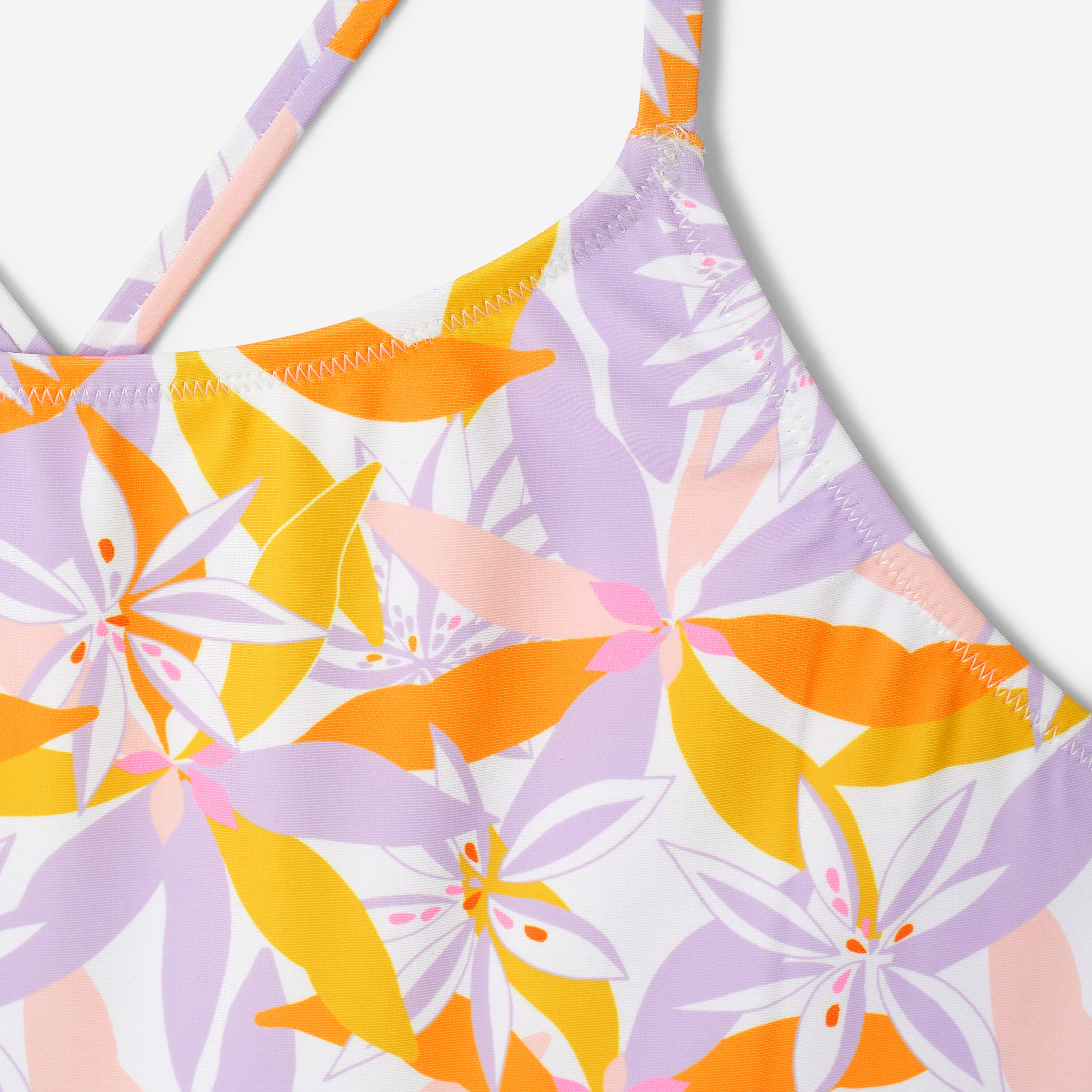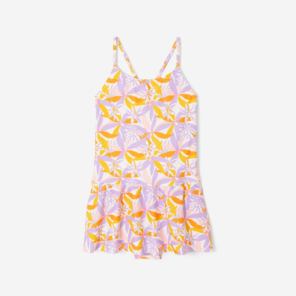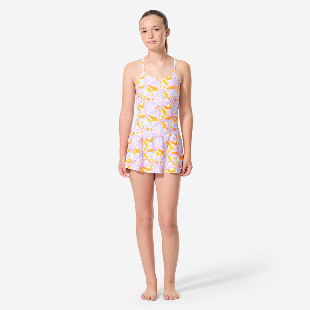 A comfortable, lined girls’ 1-piece swimsuit with good coverage and an original design, perfect for their first swimming lessons or for recreational use.