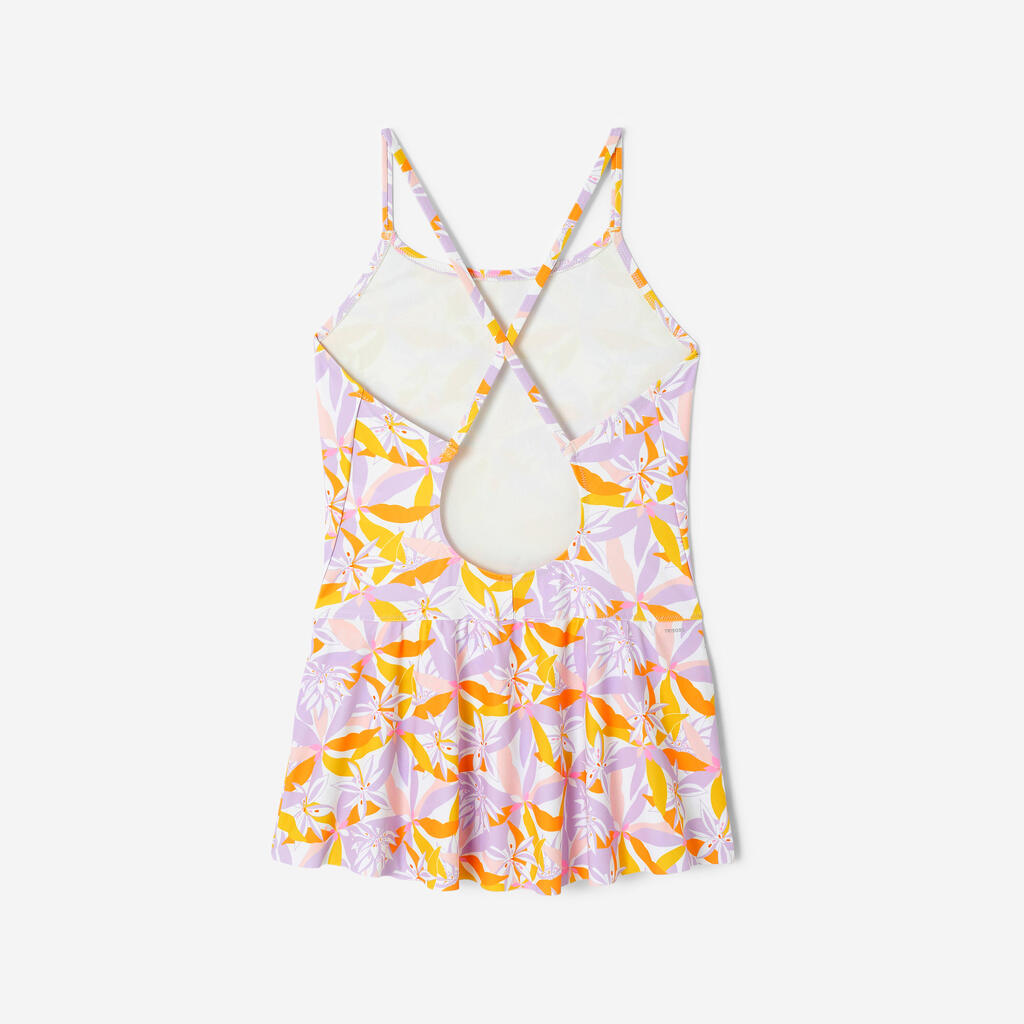 Freedom of movement guaranteed thanks to the thin crossed straps and open back. The other advantage of this 1-piece swimsuit? Definitely its style, with its skirted shape and fun patterns.