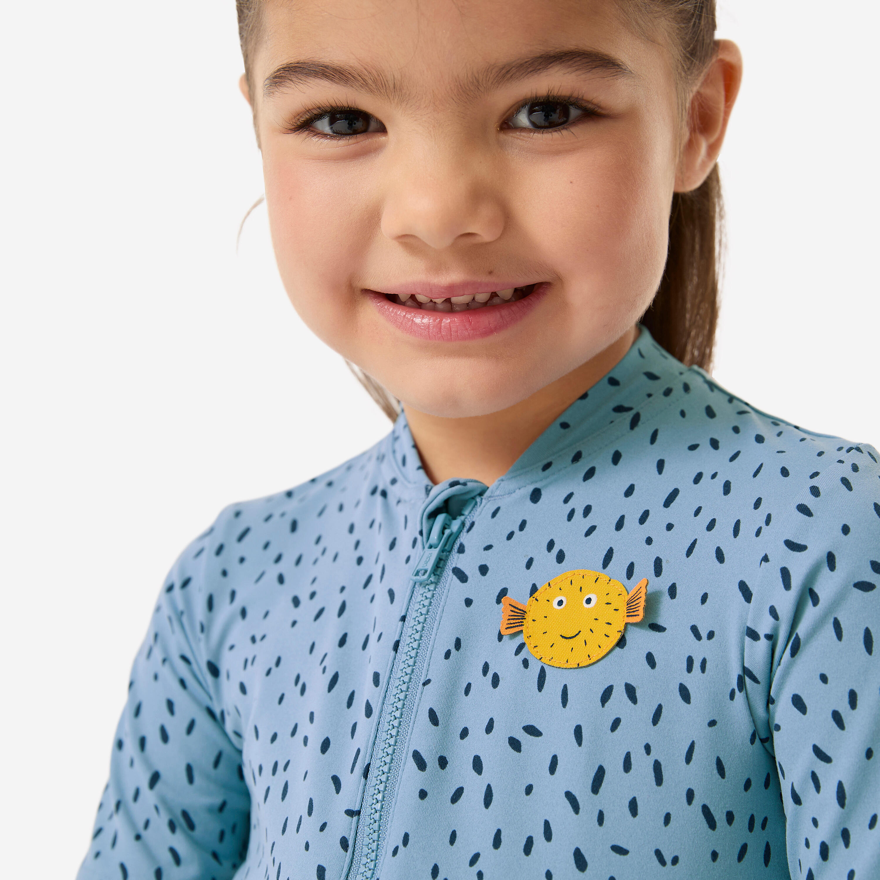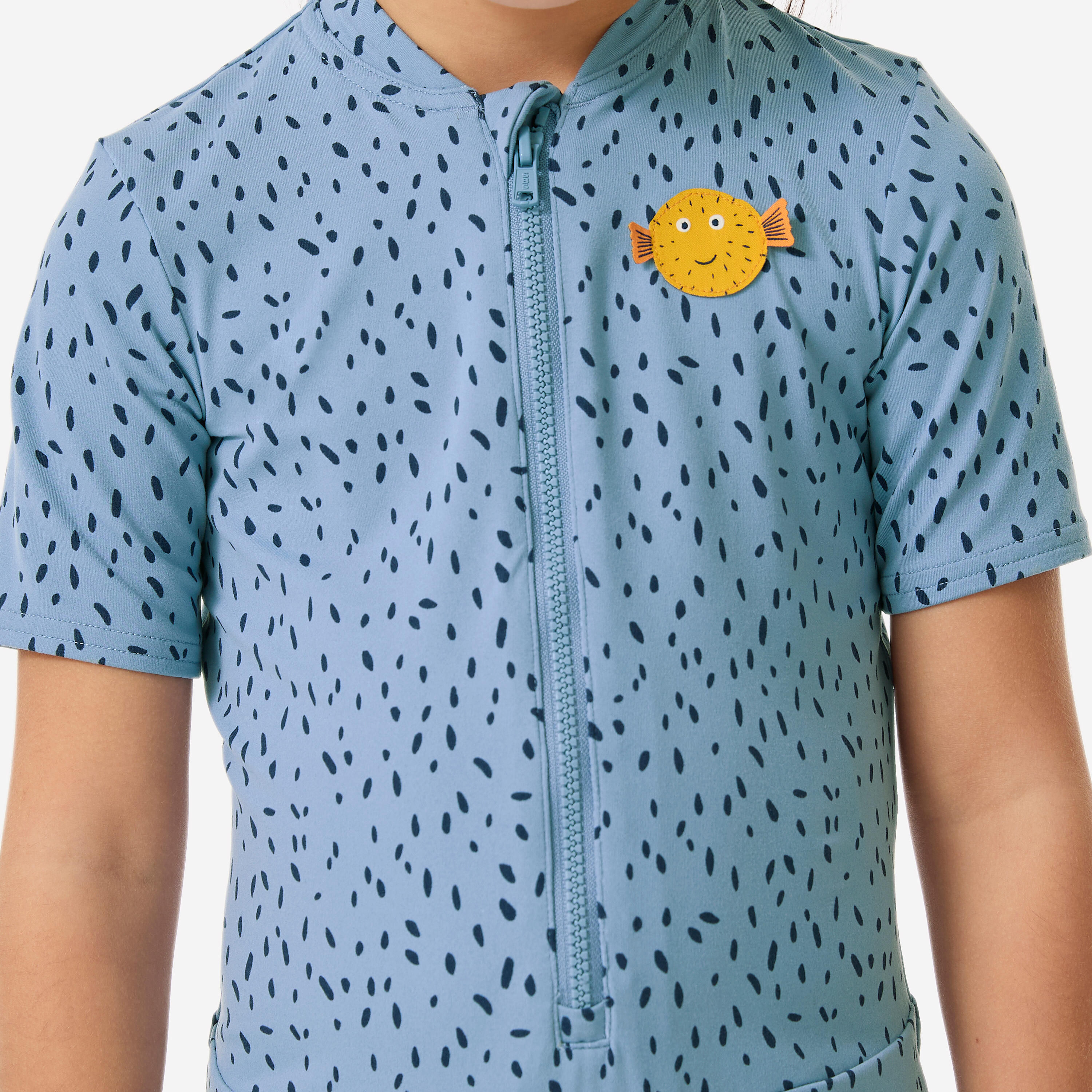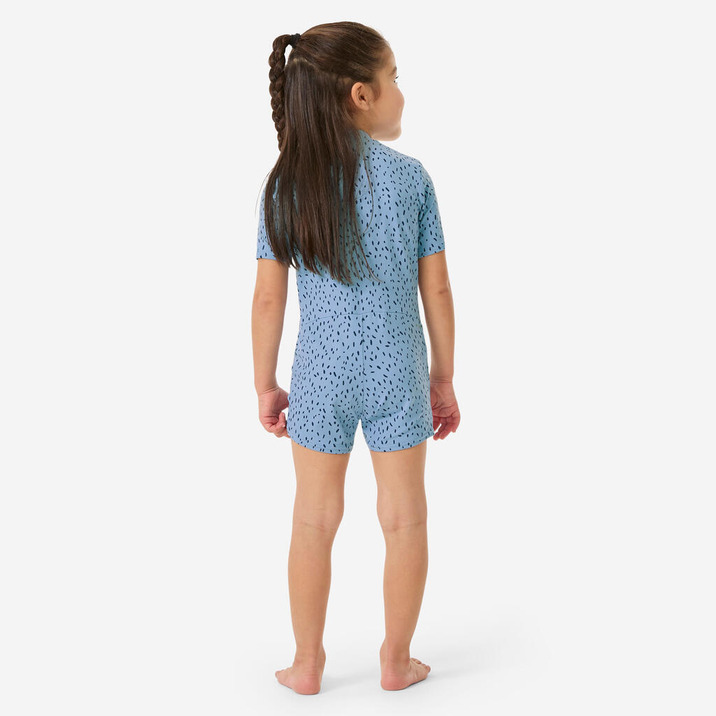 This colourful suit with short sleeves and legs is made from a UV-protection component that protects even when wet! It’s easy to put on thanks to the front zip and press studs at the crotch.